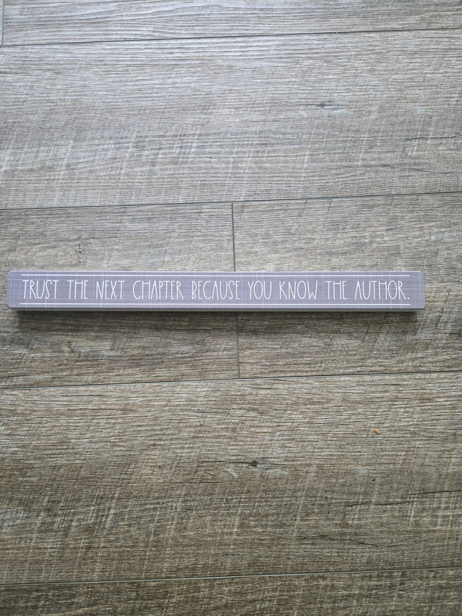 Discover the transformative power of Trust the Next Chapter Stick. Crafted with precision and measuring approximately 16"x1.5"×.05", this unique piece is hollow inside, symbolizing the endless possibilities that come with embracing change. Perfect for inspiring motivation and adding a touch of rustic charm to any space.